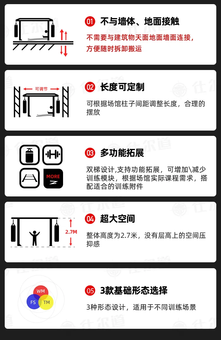 双梯设计,支持功能拓展,可增加、减少训练模块,根据场馆实际课程需求搭配合适的训练附件