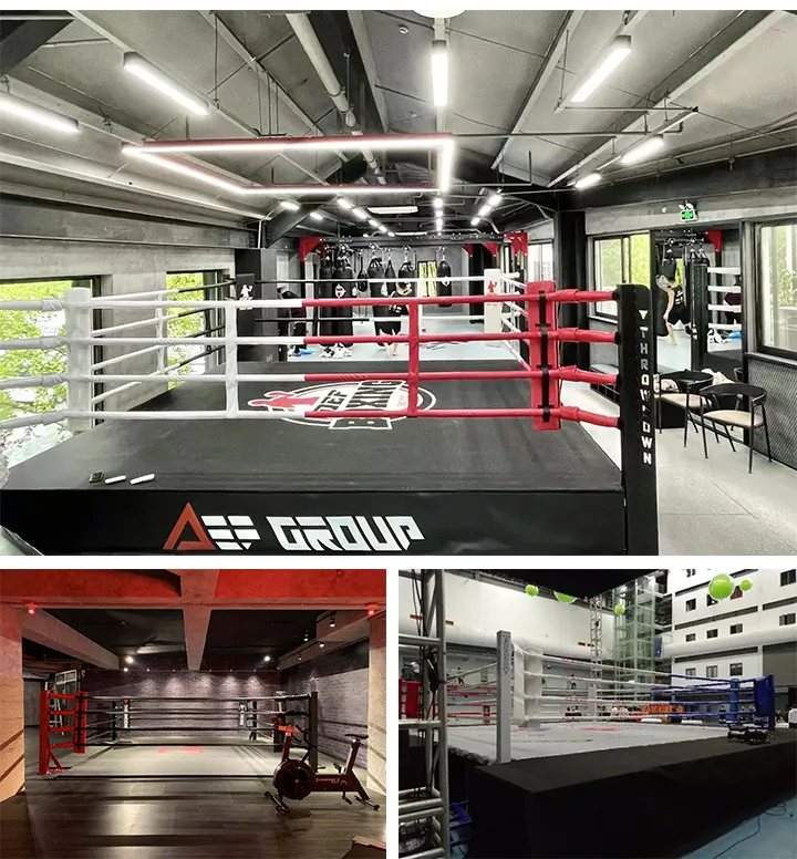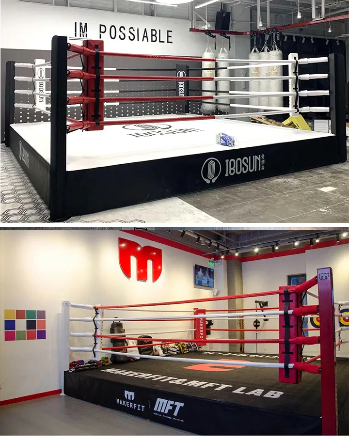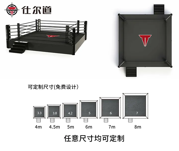 2.仕尔道标准拳击擂台高弹性围绳与立柱联为一体,可以随着冲击自然摆动,消除训练比赛过程中的冲击带来的身体损伤。