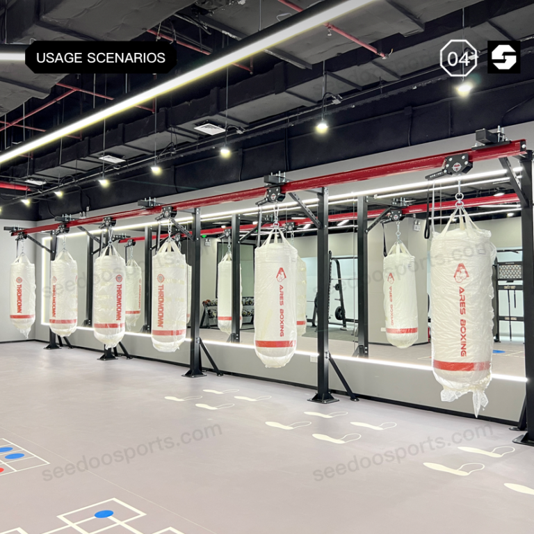 SEEDOO 仕尔道设计的顶部吊装安装式轨道系统可最大限度地利用健身房空间。与我们可锁定的滚轴式拳击袋固定装置相结合,您可以将拳击袋移动到轨道的任何位置,解锁和锁定。您可以连接多段轨道,包括弧形滚轴式固定轨道,以实现健身房所需的布局。当然,它也可以是一个循环轨道系统。