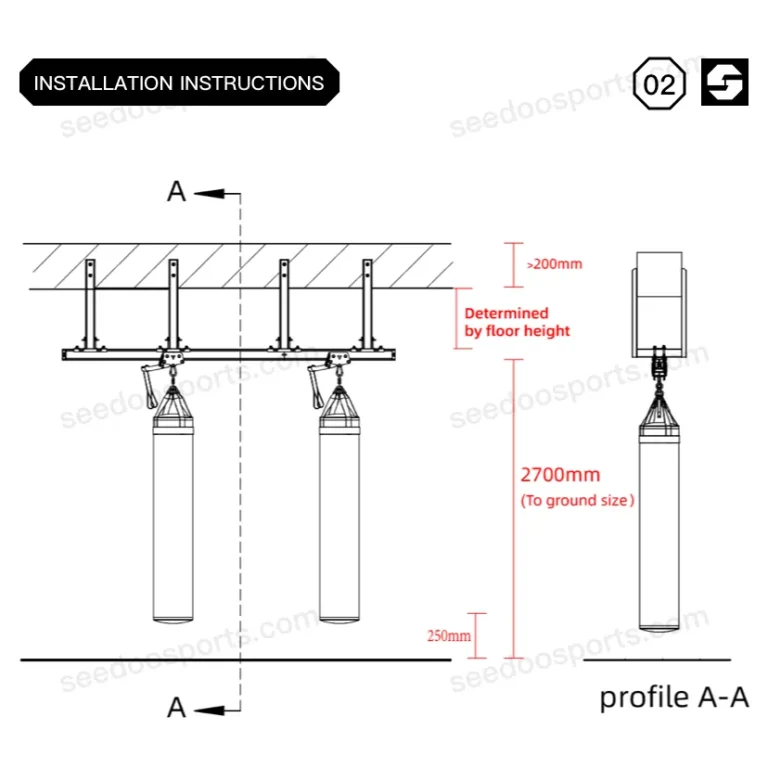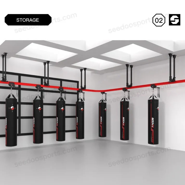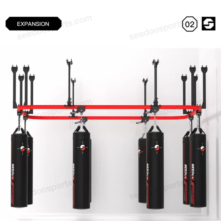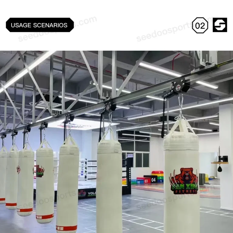 SEEDOO 仕尔道设计的顶部吊装式轨道系统可最大限度地利用健身房空间。与我们可锁定的滚轴式拳击袋固定装置相结合,您可以将拳击袋移动到轨道的任何位置,解锁和锁定。您可以连接多段轨道,包括弧形滚轴式固定轨道,以实现健身房所需的布局。当然,它也可以是一个循环轨道系统。